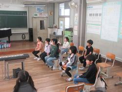 五線譜上の音を読み取る場面です。音楽の先生から読み取るときのポイントを教えてもらいながら、学習していました。何度も繰り返し練習することで、見た瞬間に読み取れる子がたくさんいました。こういうことを一から丁寧に学ぶことで、正しい音程が身につくのかなと感じる授業でした。