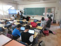 12月の6年の教室らしい雰囲気です。卒業文集を作成しています。以前だったら、手書きで作成するしかありませんでしたが、タブレットで作成し、先生に提出するのもタブレット上で済みます。データで提出されたものを担任がタブレットでチェック。もちろん手書きで作成したい子は清書を手書きで行います。自分自身で方法を選んで、作成しています。完成までもう少しかな。