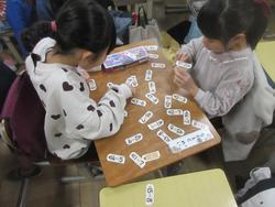楽しくゲームしているのかなと思って、教室に入ってみると、算数でした。計算カードを使って引き算の練習をしていました。友だち同士で楽しそうに行っています。何でも楽しみながら行うことは大切なことです。楽しみながらも、引き算がしっかりできるようになってください。