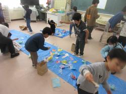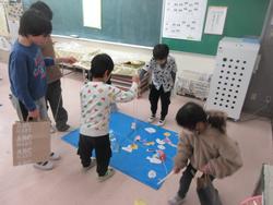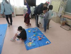 自分たちで作った魚などの獲物にクリップをつけ、釣り竿の先には磁石を着けて、釣り大会をやっていました。「校長先生、釣れたよ!」と笑顔で報告に来てくれる子供たち。夢中になって取り組んでいました。