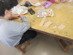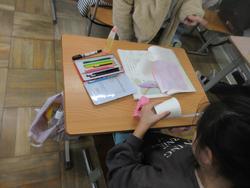図工かなと思って、教室に入ってみると、国語でした。教科書にのっているおもちゃのようなものを実際に作っていました。文章を読んだり、書いたりするより、何だか楽しそうです。でも、書いてある内容をしっかり理解していないと作ることができません。読み取る力がポイントですね。