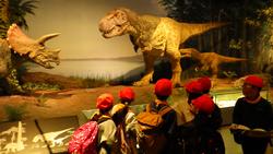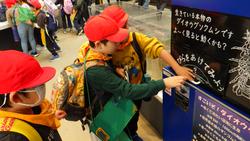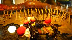茨城県自然博物館では、各グループごとに行動することができました。自然博物館ノートというものがしおりにあり、その問題を解く形で、博物館内の展示品を見たり、触れたりしながら、見学することができました。