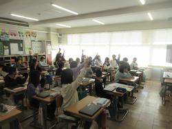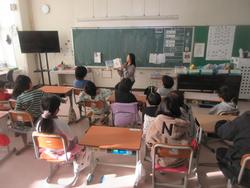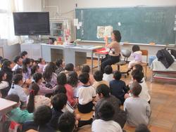 保護者ボランティアによる読み聞かせは、子供たちも集中して、本の世界に入り込んでいます。この静かな時間は貴重な時間です。ボランティアの皆さん、いつもありがとうございます。実は、この写真の中に担任の先生がいます。どの写真かわかりますか?