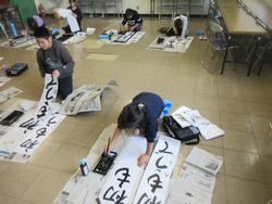 新春恒例の書き初め大会が校内で行われています。3年生以上は体育館で、1,2年生は各教室で、2学期終わりから冬休みにかけて練習してきた成果を発揮します。