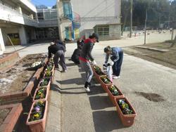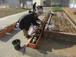 用務員と共に、保護者の方にお花の準備をお手伝いしていただきました。1月とは思えない暖かい陽気の中で、色鮮やかなお花が準備されており、「えっ、春?」と思ってしまいました。大切にしていきたいと思います。保護者の皆様、ありがとうございました。