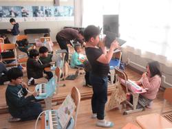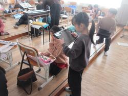 鍵盤ハーモニカの練習をしています。指づかいを先生としっかり確認した後は、友だちに動画を撮ってもらい、その動画は先生に提出します。自分の演奏を動画で振り返ることができるので、上達への近道にもなります。音楽も、デジタルの力も活用しながら進めています。