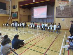 さすが6年生だなと感じました。他の学年よりも体育館全体にピリッとした緊張感があります。集中の度合いもかなり高いものです。この6年生は、私も4年生の時から見ているので、成長ぶりがとても嬉しいです。
