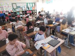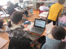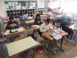 昔遊びを1年生に説明するための授業です。「はじめに」「つぎに」「そして」などの言葉を順序よくつかって、わかりやすく説明することがゴールです。今日はコマ、お手玉、けん玉、あやとりのそれぞれのやり方をネットで検索しながら情報を集めていました。1年生の時は実際にたくさん遊んだと思うので、その経験も思い出しながら1年生に説明して欲しいと思います。