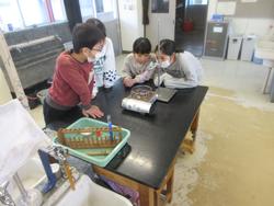 実験の中でろ過をしている場面でした。グループごとに協力しながらろ過をしていました。二人で協力しながらろ過をしているので、逆に難しそうにやっていたり、ガラス棒の先端を当てる場所が「?」と思ったり、いろいろと苦戦していましたが、こういう経験も普段の生活ではなかなかできません。実験スキルもたくさん経験して、高めてください。