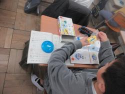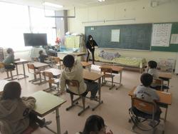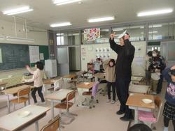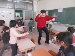 4組にオニが表れました!節分の勉強をしている子供たちの中に、突然、大きな赤オニが登場しました。子供たちは一瞬ひるんだ様子でしたが、さすが節分の勉強をしている子供たちです。すぐに豆をまいたり、大きなオニをこわがることなく、パンチをしたり、退散させることに成功しました。(パンチはよくないか・・・。)勇敢な子供たちのもとには福がきました!楽しい、楽しい時間になりました。良い1年になりますね。
