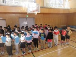 私の方からは学習のまとめに入る2月ですが、新たな「?(はてな、疑問)」もいっぱい見つかると思うので、見つけた「?」はゲームをクリアするかのように、解決に向けて自分で動いて欲しいという話をしました。2月の学校便りの話を子供たちにも伝えました。生徒指導の話では、感謝の気持ちを伝えるというテーマで、子供たちの声も聞くことができました。2月は「6年生を送る会」があります。「ありがとう!」があふれた2月の上二小になるといいですね。