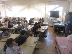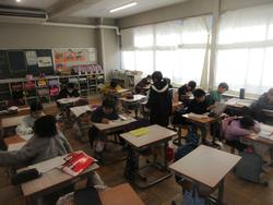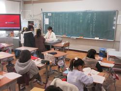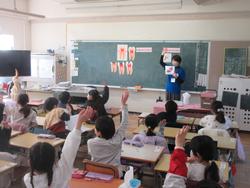 松戸市歯科医師会により、「フッ化物洗口健康教室」が行われました。1年生のほか、5組でも授業がありましたが、予定していた2年生は学級閉鎖のため後日動画を見ることになっています。授業では、虫歯についての理解を深め、最終的には明日からのフッ化物洗口にむけて、水で練習をしました。歯の健康は本当に大事です。今日の授業のことはおうちでも話題にして欲しいと思います。
