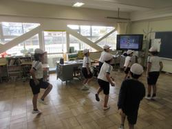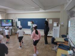 千葉県民なら必ず知っている「菜の花体操」を5組の皆さんがやっていました。「必ず知っている・・・」ちょっと言い過ぎましたが、私も大好きな体操です。私自身が他の学校で体育主任という立場のときには、必ずこの菜の花体操を選んで、全校で取り組んでいました。保護者や地域の方でやったことがあるよ、という方がいたら教えてください。5組のみなさんも上手になってきています。