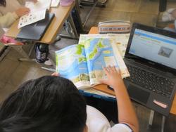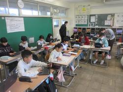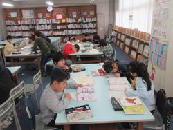 図書室で国語の学習を進めています。図書室は本を読むだけの場所ではありません。学習の場でもあります。今、知りたいことが図書室にあるたくさんの本の中から探すこともできます。また、関連する本もあるので学習が広がる可能性もあります。ネット検索では得られない良さも、この図書室での学習にはあります。子供たちも必死に本を調べていました。