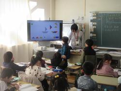 月曜日に紹介した「かたちづくり」の授業です。隣のクラスでは実際に色板を動かして考えていました。教室に入ると、教室のモニターに近づいてしまうほど集中して取り組んでいる子もいます。色板の向きを変えたり、裏返しにしたり、脳をフル活動させながら、学習していました。