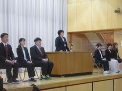 着任式では、7名の転入された先生方から挨拶をいただきました。これからみなさんと一緒に学校生活を送るので、顔と名前をしっかりおぼえてくださいね。