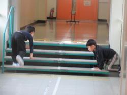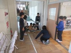 2年生は、掃除の進め方についてクラスで確認です。ろうかの雑巾掛けも腕を横に動かしながら後ろに下がっていく拭き方をマスターしていました。