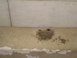 朝、巣を見るとツバメが中に入っていました。巣を見上げていた低学年の児童が