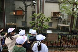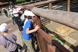 グループでの見学の様子です。リーダーを中心に、いろいろな動物の展示