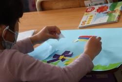 のりをつけて色画用紙に貼っていきます。何ができるでしょうか?