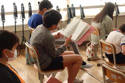6年生音楽「絆」というすてきな曲を練習しています。音程に気をつけ