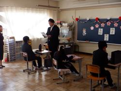 体育館での卒業式を終え、卒業生はそれぞれの教室へと戻りました。最後の学級活動の時間です。担任そして友達と過ごす、最後の授業です。今まで当たり前のように通っていた教室。それが今日終わりを迎えました。卒業したことを実感するのは、おそらく、来週の月曜日以降かと思います。月曜日朝起きて、「あ、みんなは学校だけど、今日から学校にいかないんだ。」そんな日が続くことでしょう。その間に、ぜひ上二小で過ごした6年間を思い出してほしいと思います。それらの思い出が、これからの皆さんをきっと支えてくれるはずです。