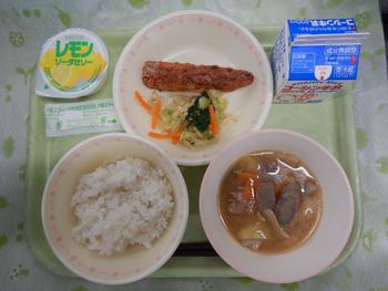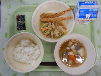 献立名:ご飯 鰯 の竜田揚 げ 豚汁 おひたし レモンソーダゼリー 牛乳