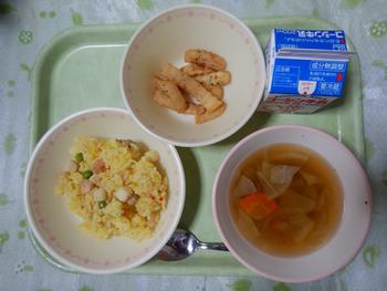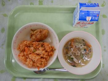 献立名:ケチャップライス タンドリーチキン 米粉マカロニのスープ 牛乳