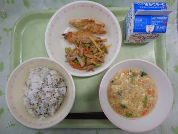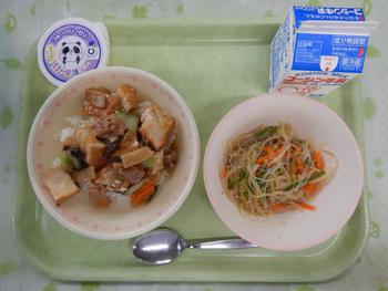 献立名: ご飯 生揚げの中華煮 春雨サラダ 目の愛護デーゼリー 牛乳