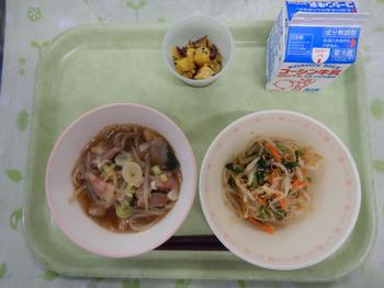 献立名: 醤油ラーメン 大学芋 ナムル 牛乳