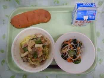 献立名: あんかけ焼 きそば 和風 サラダ ぶどうパン 牛乳