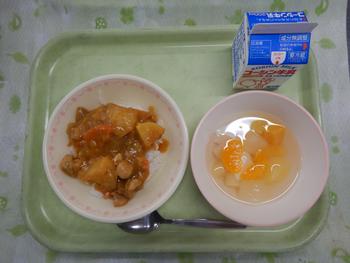 献立名: チキンカレーライス 杏仁ポンチ 牛乳