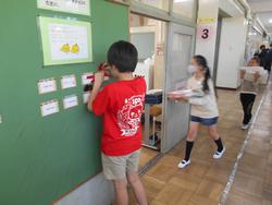 また、委員会によっては早速活動に入っているところもありました。環境美化委員会が全教室を分担して、教室内の清掃ロッカーの点検をし、結果をお知らせしようとしている場面に出会いました。