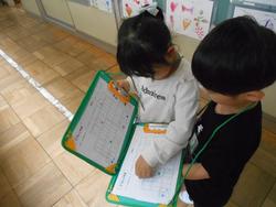 一方、校内では2時間目に1年生の学校探検を行っていました。小金小は5階まであります。どんな教室がどこにあるかな?ペアになって探検し、行った場所に用意されているシールを自分のワークシートに貼って確かめていました。少しずつ1年生の教室以外の小金小の場所を覚えてくださいね。