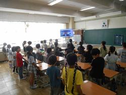全校朝会が終わった後は、児童会役員進行による陸上部壮行会を行いました。各種目の練習風景とメンバー紹介、部長からの挨拶、児童会役員代表からの言葉の後は応援団による応援の画像が流れ、全校児童で各教室から応援をしました。それぞれの教室から応援する声が響いていました。