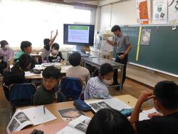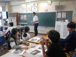 6年生は言語活用科・日本語分野で「2枚の絵の分析」を通してその背景を考え、分析したことを互いに説明する学習