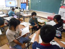 5年生は音楽でリコーダーやキーボートなどの楽器を使って「曲想の変化」を感じ取ったり、国語で俳句や算数で分数の表し方をそれぞれ考え説明し合って発表