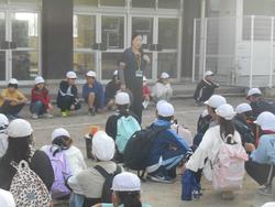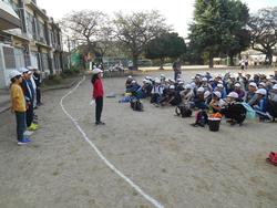 今日は、5年生が校外学習に出かける日です。林間学園での経験を生かし、さすがは高学年の5年生。実行委員のスムーズな進行のもと校庭で出発の会が行われました。