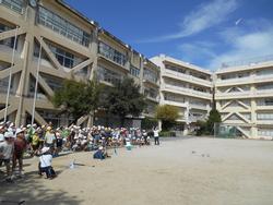 そして、最後は担任の先生たちが空気を入れ、4年生全体でカウントダウンをして発射!小金小の空高くに飛んで行き、大歓声でした。
