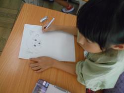 画面いっぱいに大きく描けるように下絵を描いています。大きな画用紙いっぱいに動物を描き、色塗りを今後していきます。出来上がりが楽しみです。