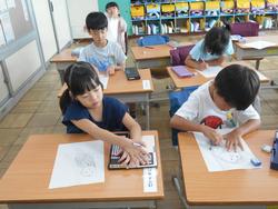 今日は1年生が、先日の校外学習で見て来た動物を図工でも絵画で表そうと取組んでいました。