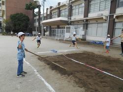 また、5時間目は外体育で走り幅跳びを行っていました。やっと運動していても気持ちのよい陽気になりました。踏切に気を付けて練習をしています。
