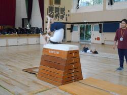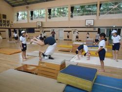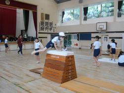 修学旅行に気持ちが向かっている6年生ですが、5時間目に体育館に行くと、体育で跳び箱・マット運動を行っている姿がありました。台上前転や開脚跳び、ブリッジやロンダードなど、今まで学習した技を班で組合わせて「シンクロ発表会」を行うための練習です。互いに見合い、よりよくなるよう班ごとに練習をしています。発表会が楽しみです。