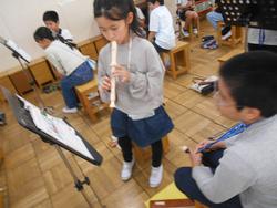 どのようにして演奏すれば「陽気な船長」の曲の特徴が表現できるか、友達同士意見交換したことを皆で共有します。タンギングや息の使い方など、よい意見がたくさん出てきました。曲の前半は歯切れよくスタッカートを効かせ、後半はなめらかでフォルテとなるよう最後は意識して皆でリコーダーを吹くことができました。