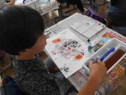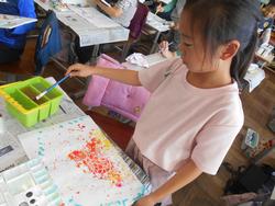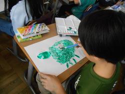にじんで色と色が混ざったり、グラデーションがかかったりしてとても美しい色合いが表現できていて感心しました。スパッタリングという方法で絵具を細かい水滴で飛ばしながら色付けを行っている子もいました。今日は1時間行って図工の時間は終わりでしたので、続きがまた楽しみです。