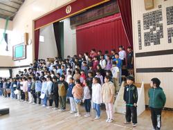 11月に入り、音楽発表会に向けての練習にどの学年も力を入れています。今週から、体育館での練習も始まりました。4時間目に体育館を覗きに行くと、3年生が練習をしていました。体育館での練習となると、並び順からの確認が必要です。それでも、さすが3年生。今日が体育館練習2回目でしたので、さっと並ぶことができました。