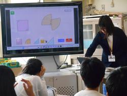 図形の見方をタブレットで動かす様子を担任の先生と前面画面で確認をし、学習のまとめを行いました。各自がそれぞれまとめていたノートには「既習の図形を組合わせる」ということがどの子にも自分の言葉で書かれていました。
