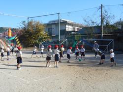 1年生は、体育・ドッチボール。ルールの確認をし、対戦!第2回戦はチーム替えもして行いました。温かな日差しのもと、元気いっぱいにボールを投げたり取ったりしていました。先生から、ルールを守らないと負けることあることも教わっていました。