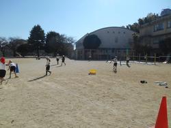 昨日の寒い1日とはうって変わって、今日は校庭にもさんさんと温かな陽が差しています。校庭では元気に体育をする小金っ子たちの様子が見られます。