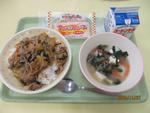今日は、来年度の新1年生のための「就学時健診」が本校で行われます。そのため、小金っ子たちは全校3時間授業の短縮日課でいつもよりうんと早い時間の給食です。今日のメニューは「豚キムチ丼、トックスープ、みかんクレープ、牛乳」です。1年生から順に教室を見て回りましたが、どの学年もよく食べていました。「辛いのかなと思ったけれど辛くなくてとってもおいしい!」と好評です。